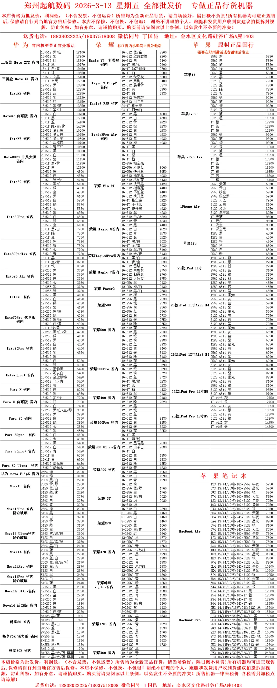 每天手机最新行情 请关注微信每日推送微信公众号:郑州起航数码公司地址:郑州市金水区文化路82号硅谷广场A座1403