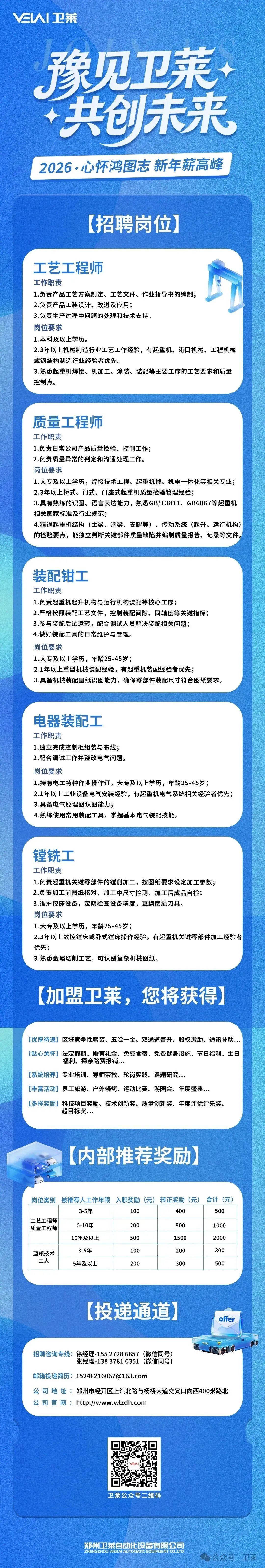 郑州卫莱招聘,五险一金!