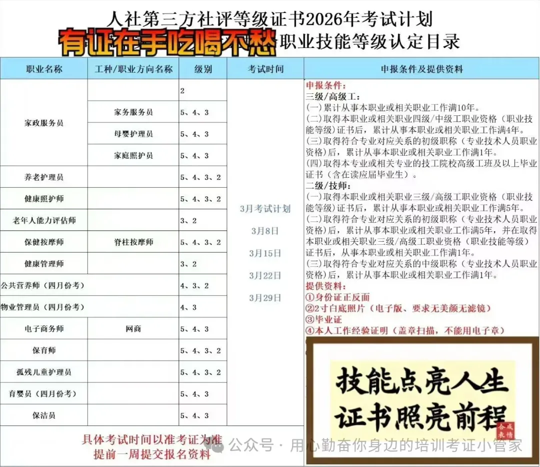 无论你是职场新人想站稳脚跟,还是资深从业者想突破瓶颈,抓住2026年政策机遇,尽早取证,就能为职业发展增添底气。愿每一位努力提升的家人,都能凭借技能收获更好的未来~