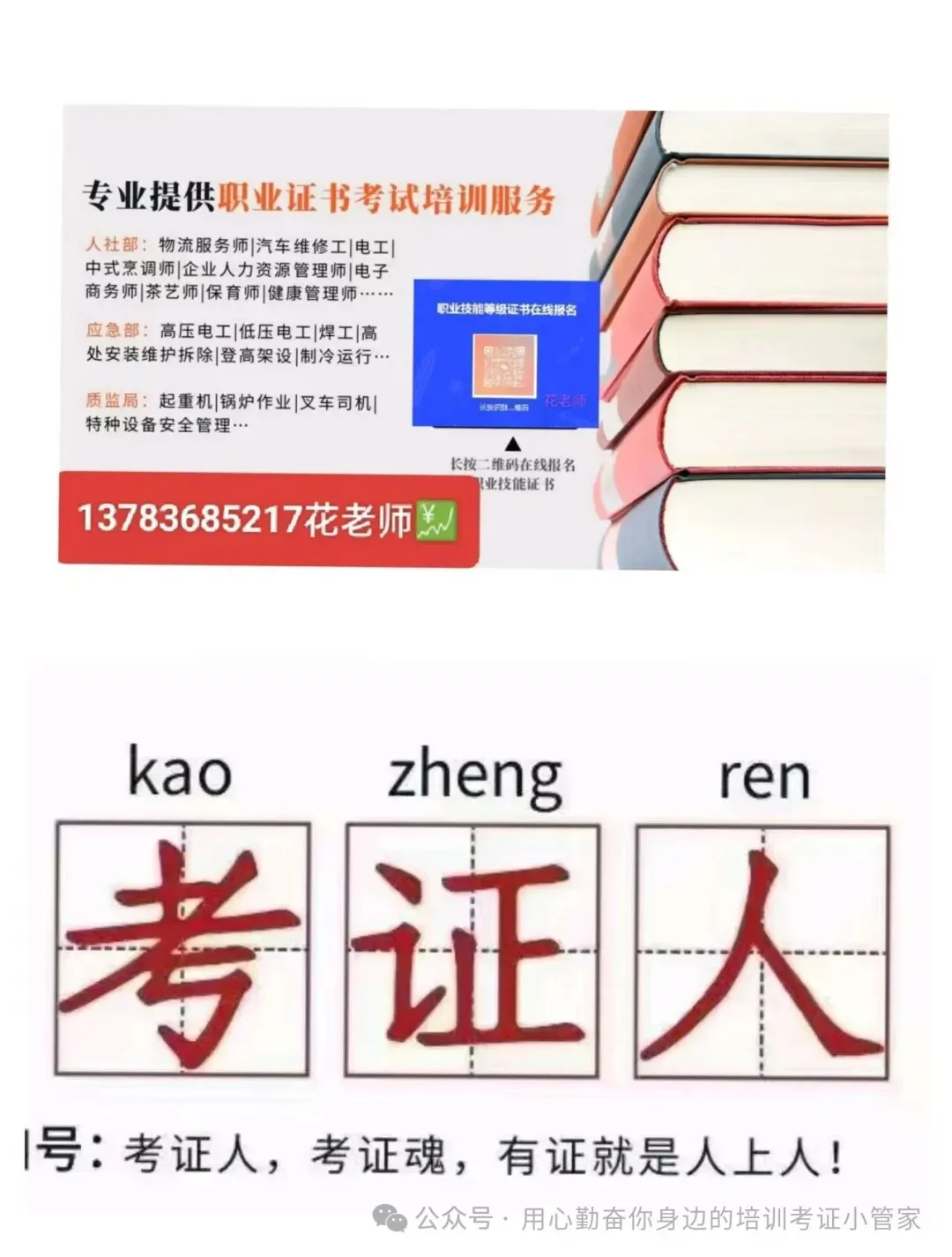 考证相关疑问,可联系花老师:13783685217,从业7年服务60000+学员,耐心专业,有问必答。