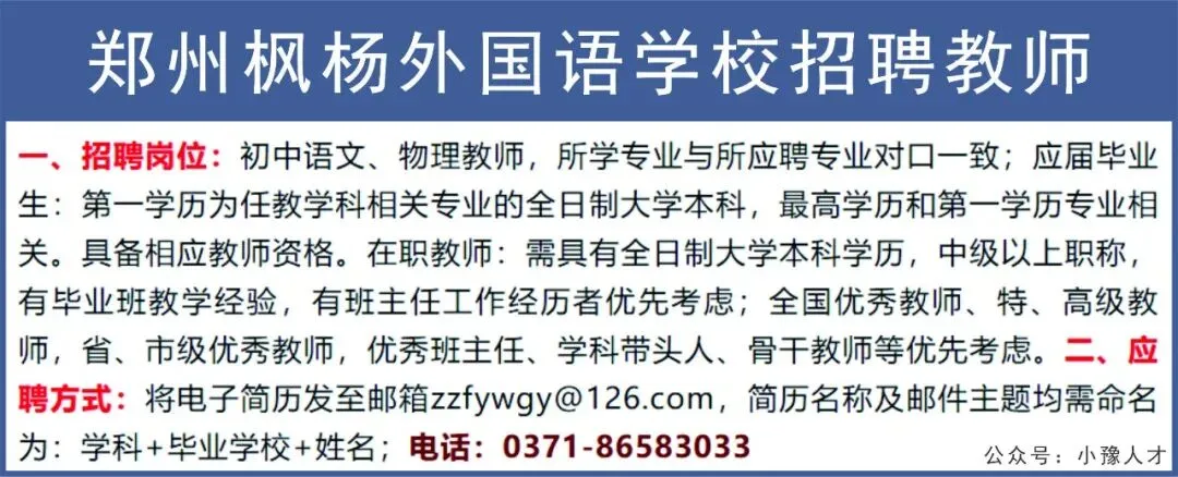 >郑州枫杨外国语学校招聘教师