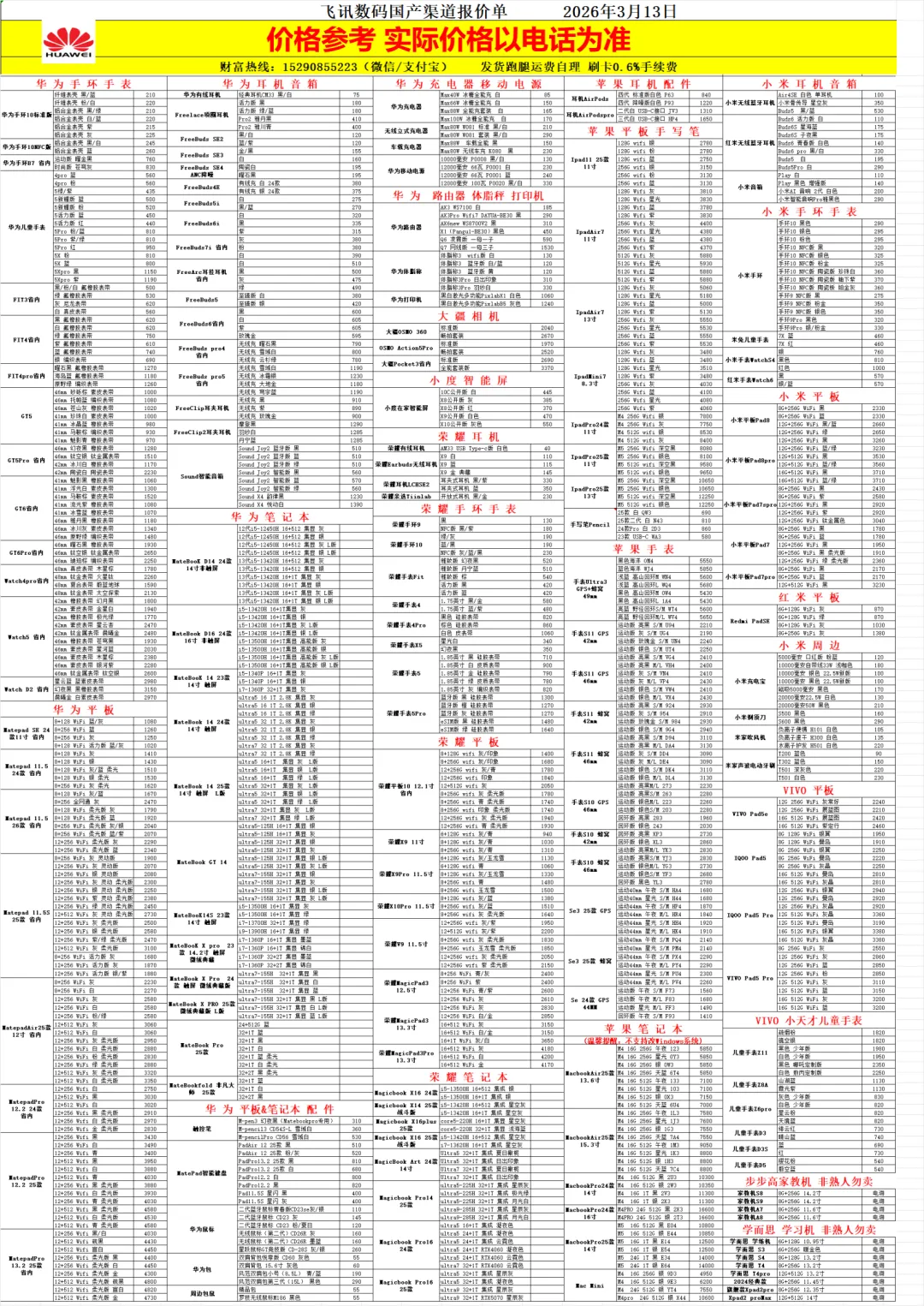 2026年3月13日渠道报价单 关注公众号查看每日报价