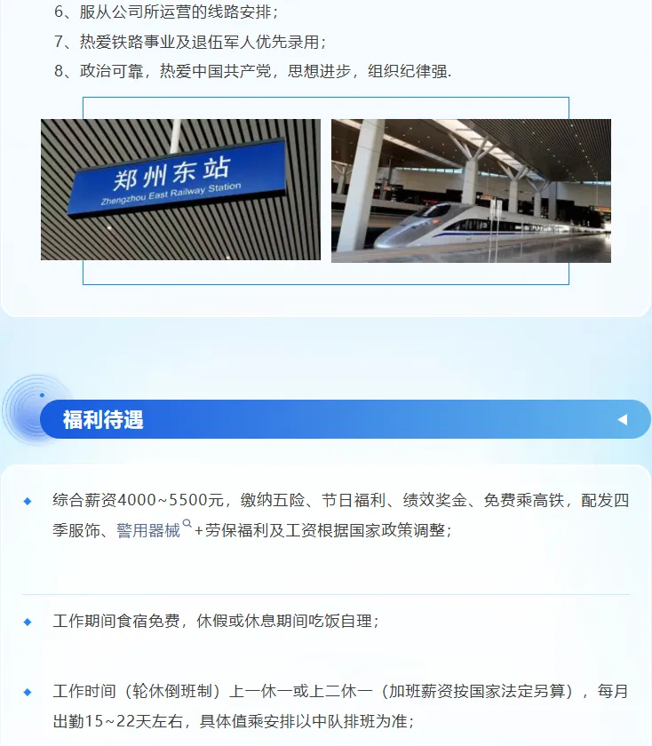 【郑州铁路旅游专列人员招聘】 车厢乘务员、餐车乘务员、工作人员!女生优先!18-28岁!大专起报!五险!到手4500+ 速度报名!面试中!
