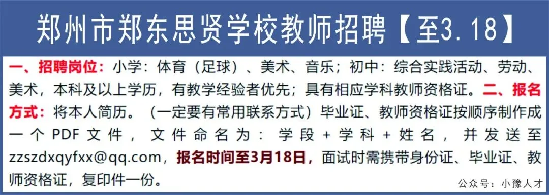 >郑州市郑东思贤学校教师招聘【至3.18】
