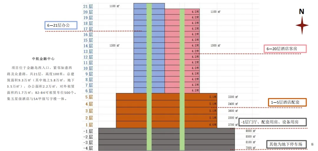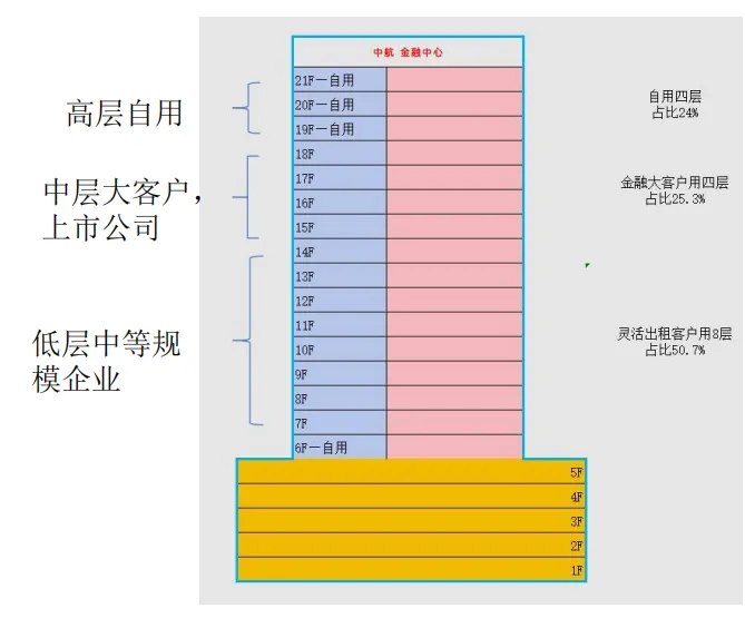 中航金融中心项目写字楼6F—21F共计2.1万平方米;单层面积1300㎡,公共区域精装修。