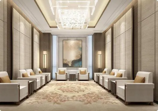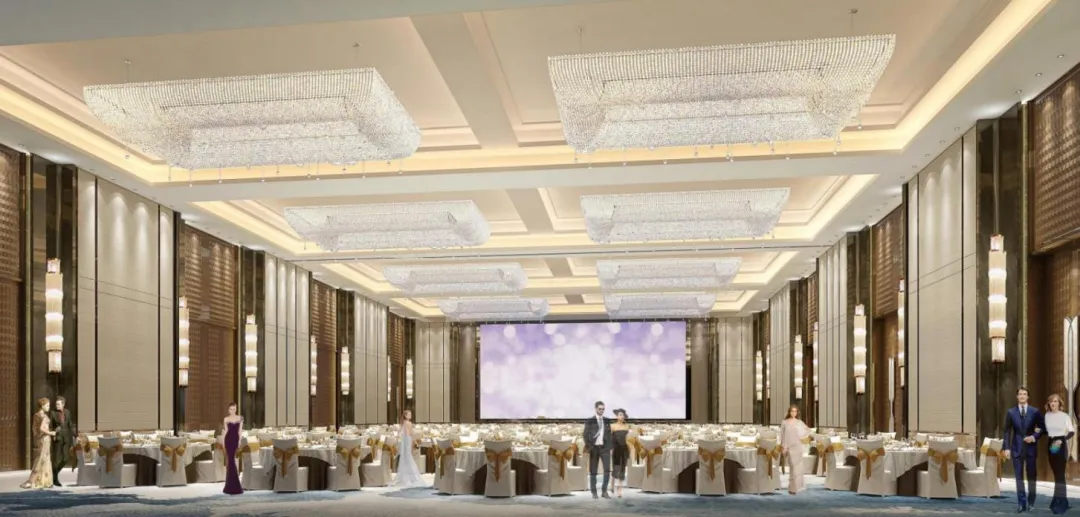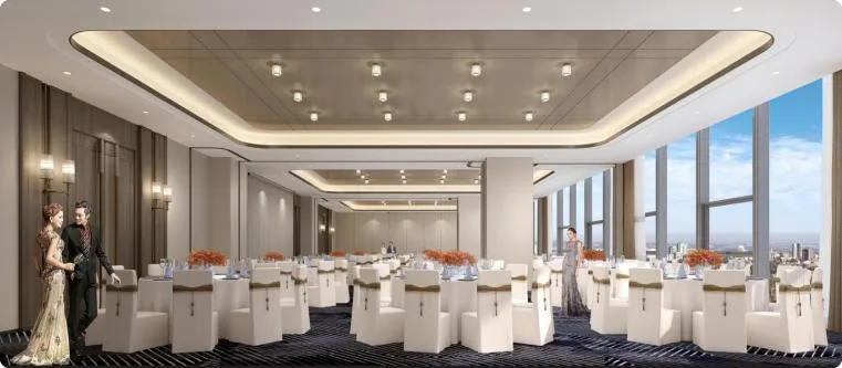 5、3层配备面积为830㎡可容纳450人同时就餐的大型宴会厅;可接待8人的42㎡贵宾接待室一间;