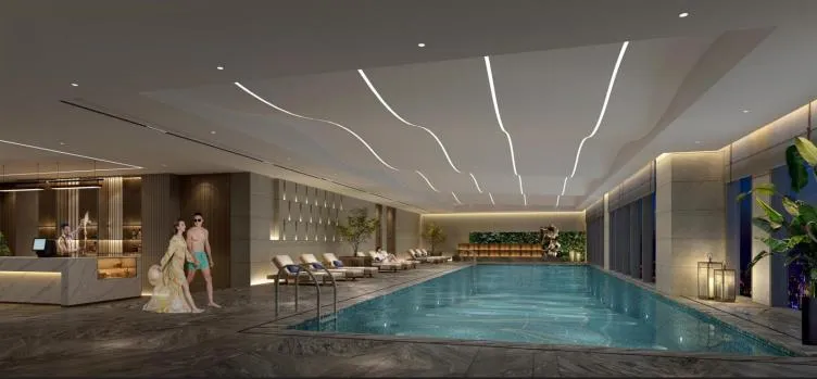6、4层配备游泳池及配套淋浴、休闲、更衣区域,130㎡健身房,茶室棋牌室6间,美容spa7间康养配套;