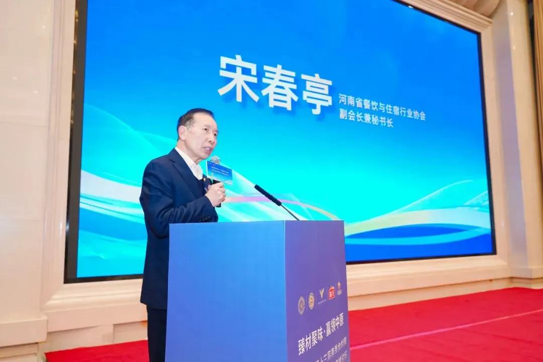 河南省餐饮与住宿行业协会副会长兼秘书长宋春亭强调餐饮与供应链的共生关系,肯定了郑州军优供应链三十余载为河南餐饮发展的保驾护航作用。