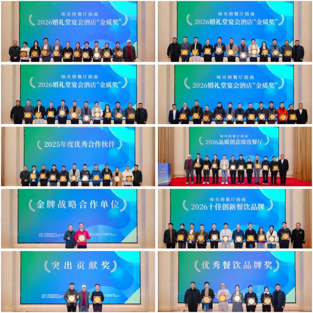 论坛现场还举办了隆重的颁奖盛典,评选出味央榜餐厅指南2026婚礼堂宴会酒店“金质奖”、十佳创新餐饮品牌、品质创意臻选餐厅等多个奖项。多个品牌、团队获此殊荣,树立了行业标杆,激发了行业创新活力。
