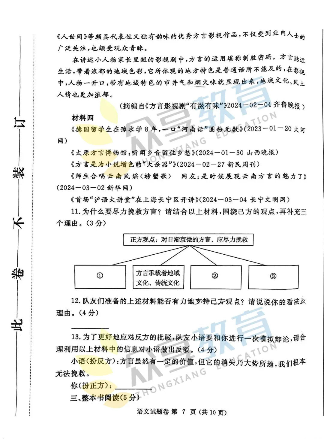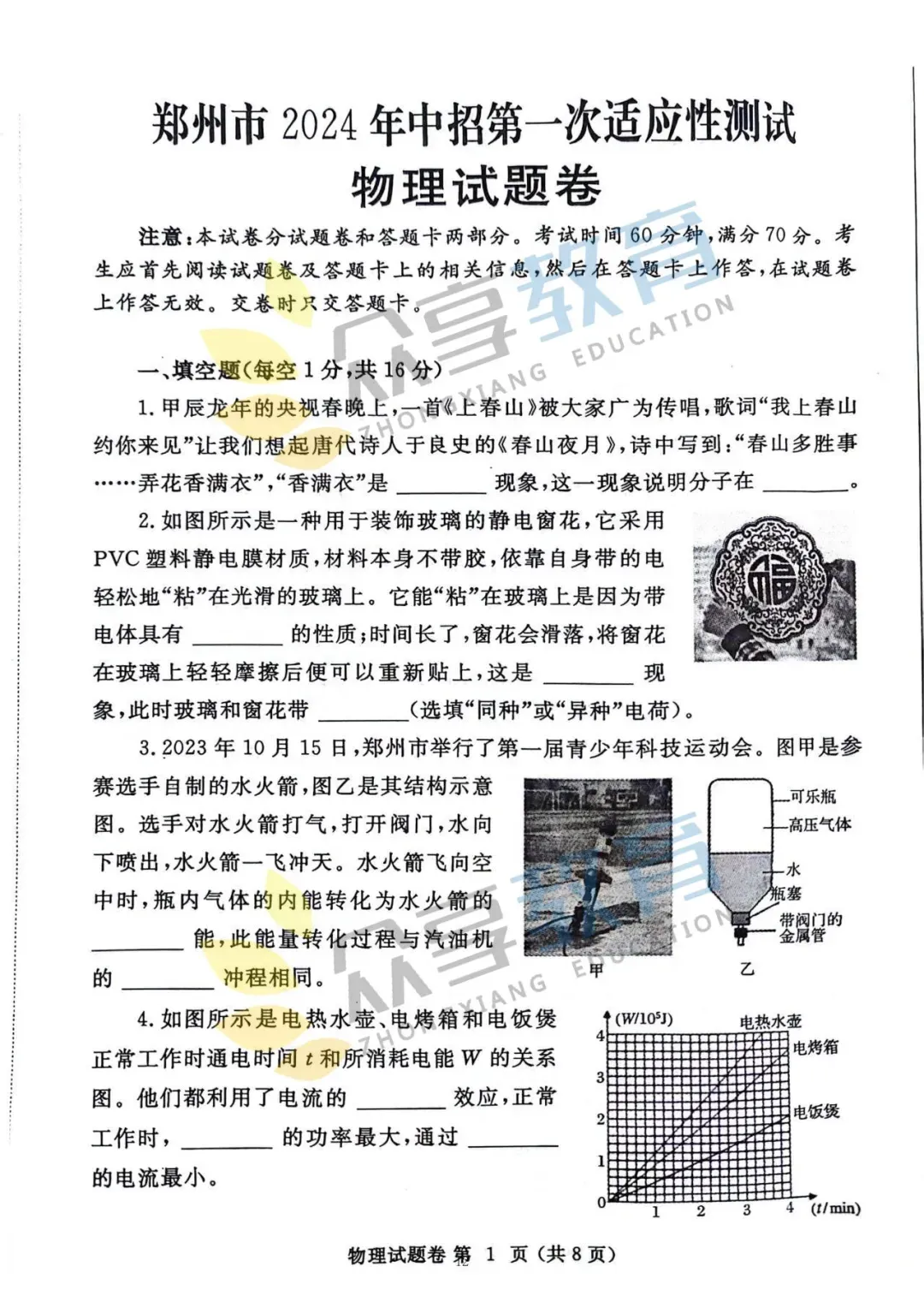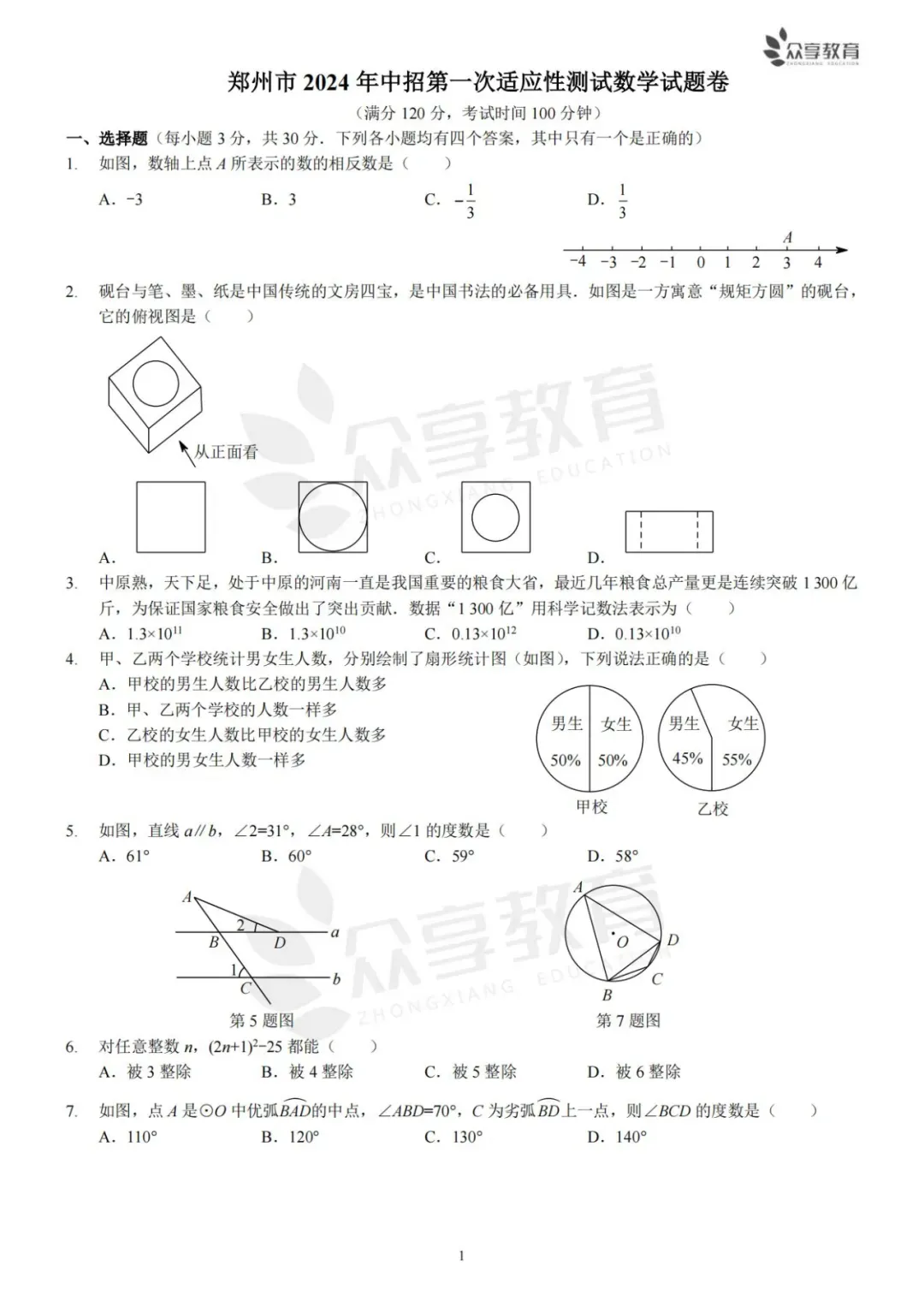 >郑州市2024年中考一模试题及答案(7科全,可下载)