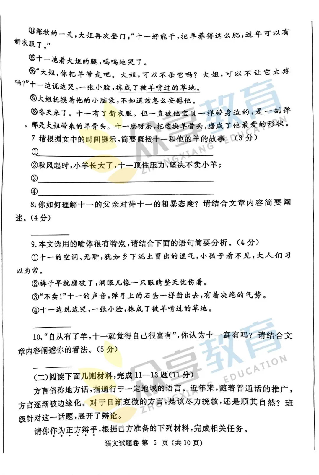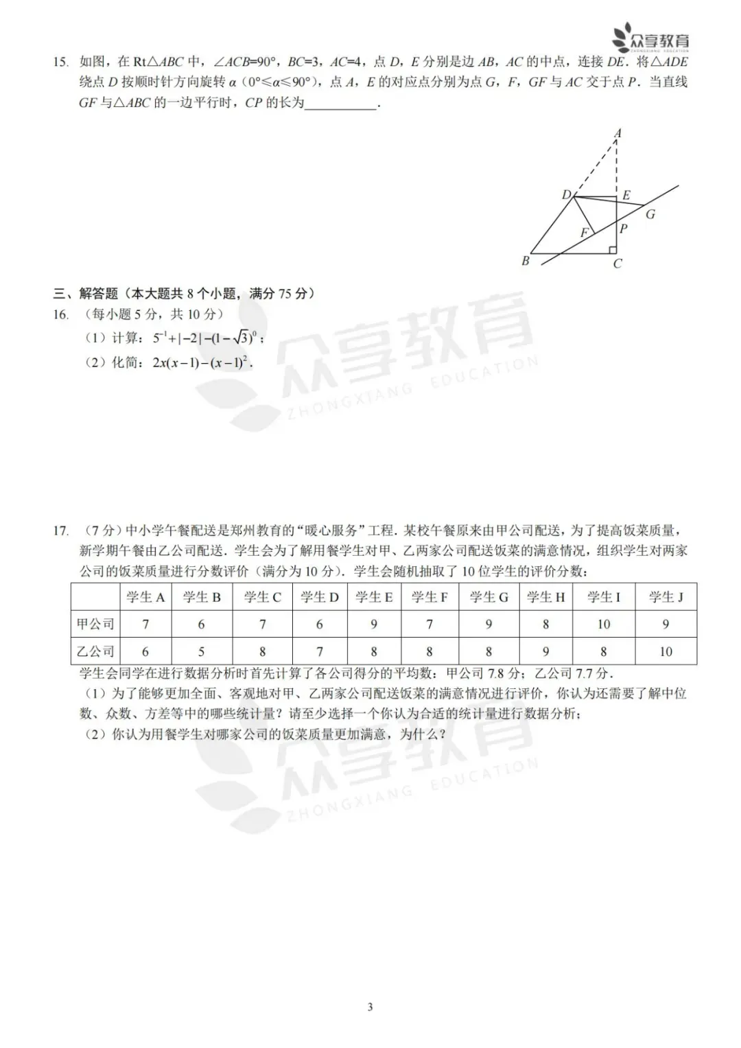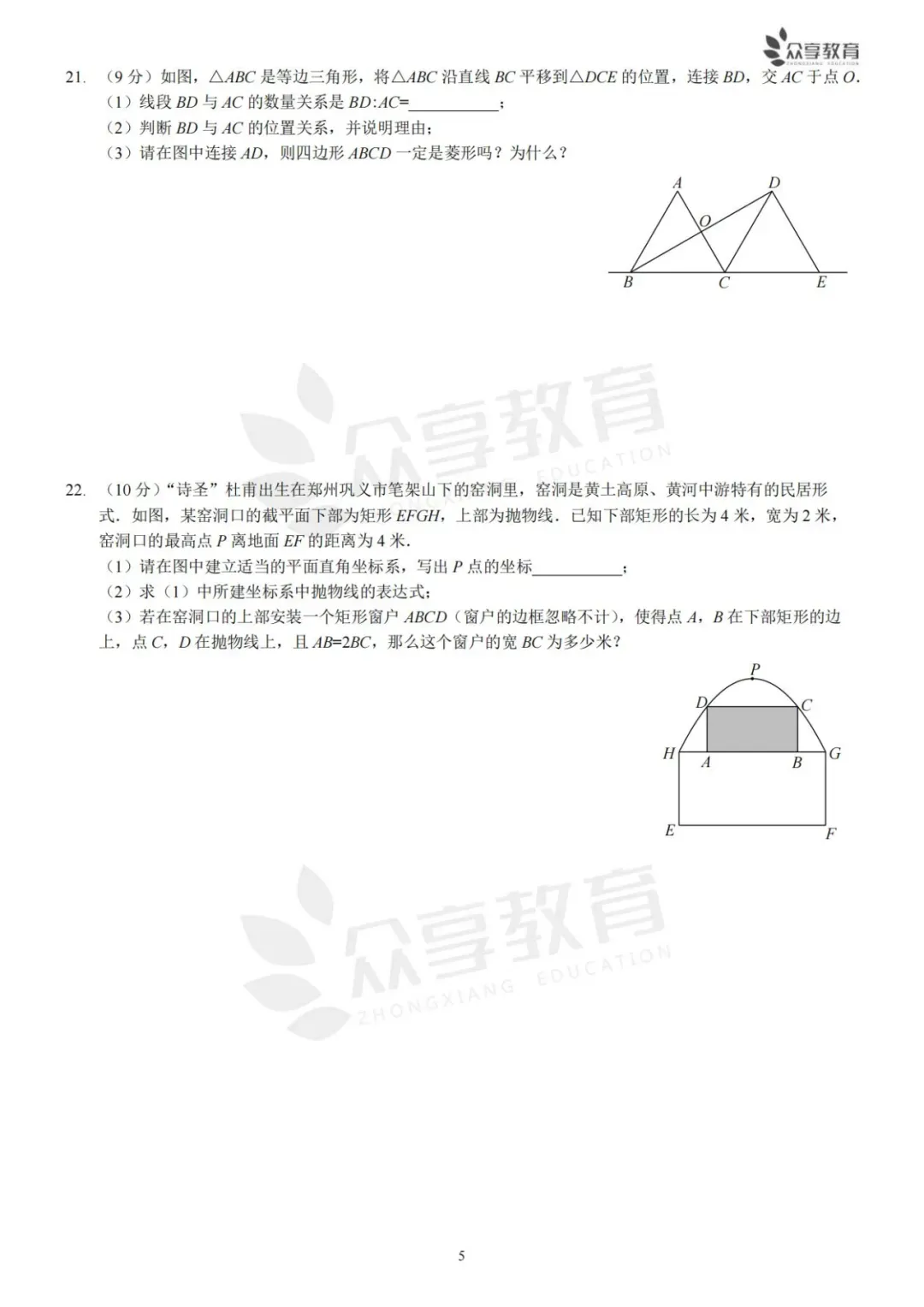 郑州市2024年中考一模试题及答案(7科全,可下载)
