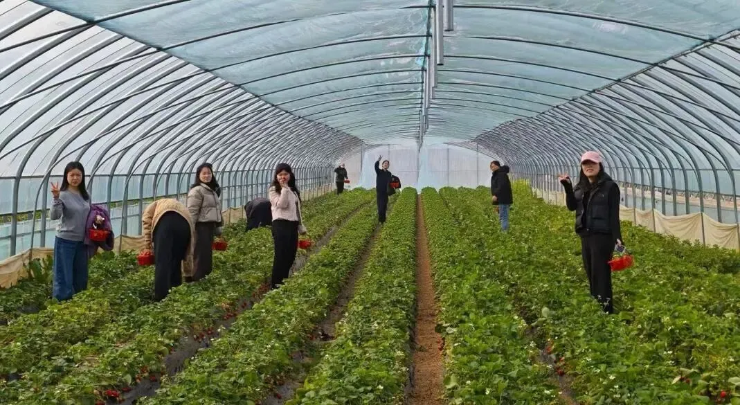 上午9时,全体同仁准时在草莓园集合,统一入园开启采摘之旅。大棚内暖意融融,翠绿藤蔓间,一颗颗饱满鲜红的草莓如红宝石般点缀其中,果香沁人心脾。大家提着果篮,穿梭在田垄间,亲手挑选、采摘,尽情享受劳作的乐趣与丰收的喜悦。