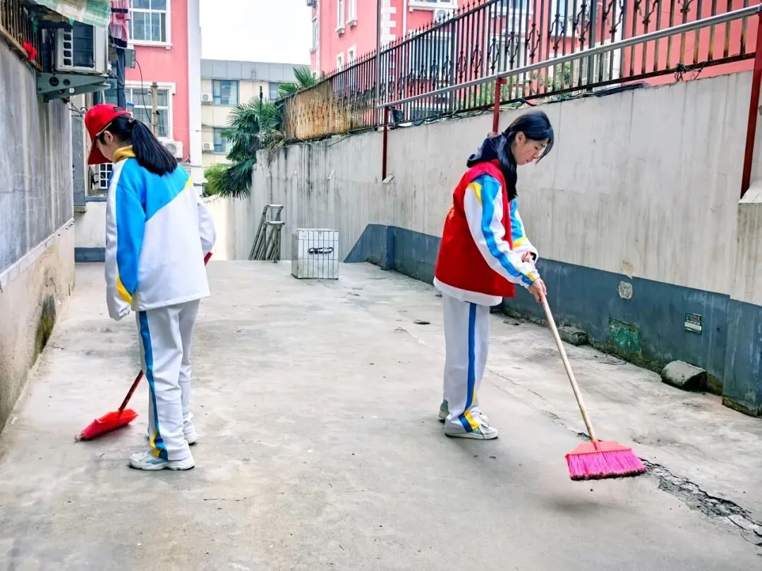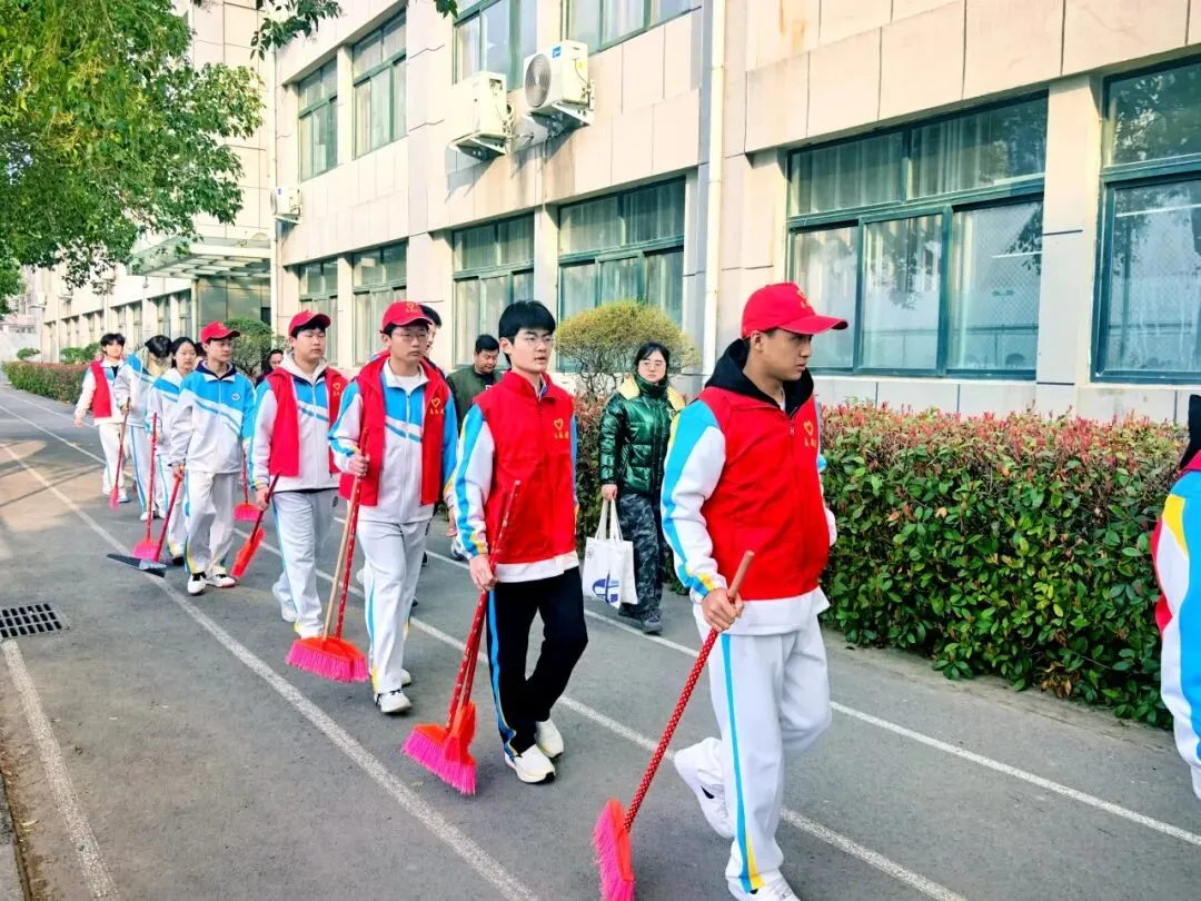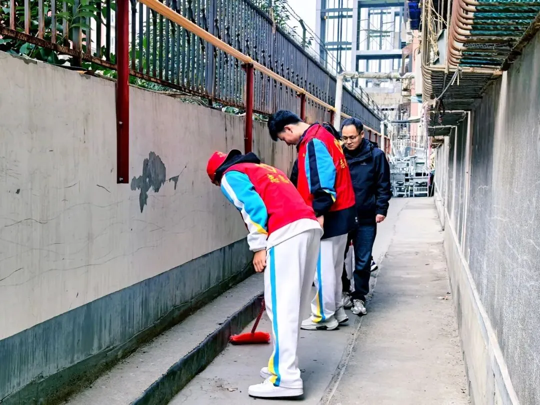活动现场,一派热火朝天的劳动景象。党员教师们身先士卒,带领团员学生们拿起扫帚、簸箕、抹布等工具,认真清扫社区道路上的落叶与垃圾,仔细擦拭公共设施上的灰尘,清理卫生死角,并对社区内的不规范停车进行了整理。同学们不怕脏、不怕累,分工协作,干劲十足,不放过任何一个角落。他们的辛勤劳动赢得了社区居民的纷纷点赞。