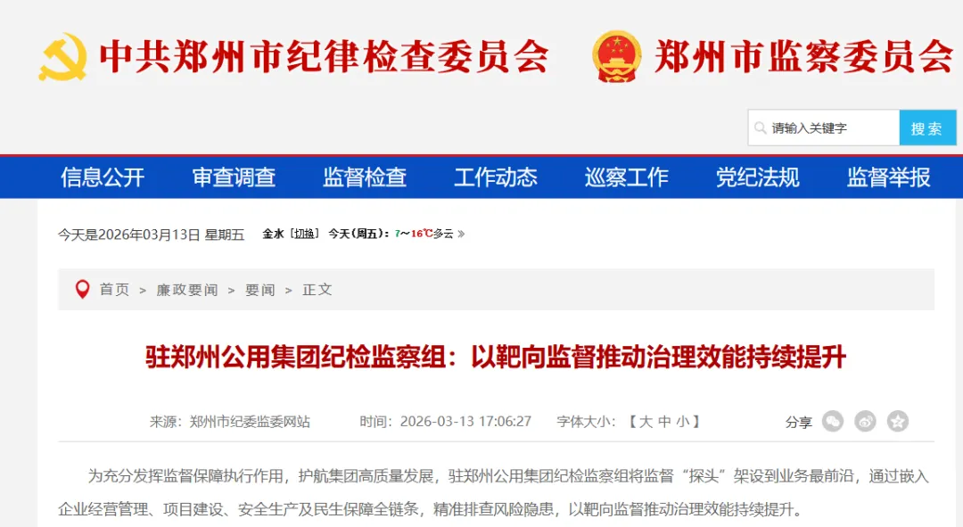 为充分发挥监督保障执行作用,护航集团高质量发展,驻郑州公用集团纪检监察组将监督“探头”架设到业务最前沿,通过嵌入企业经营管理、项目建设、安全生产及民生保障全链条,精准排查风险隐患,以靶向监督推动治理效能持续提升。