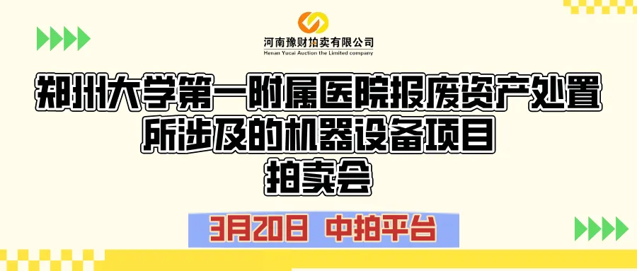 受委托,我公司定于2026年3月20日上午10时开始在中拍平台(网址:https://paimai.caa123.org.cn)公开拍卖郑州大学第一附属医院报废资产处置所涉及的机器设备一批(包含:空调、电视、电脑、病床、打印机、准分子激光治疗仪等资产)。