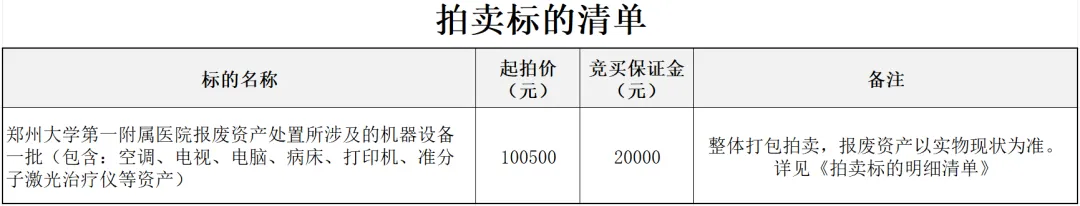 郑州大学第一附属医院报废资产处置