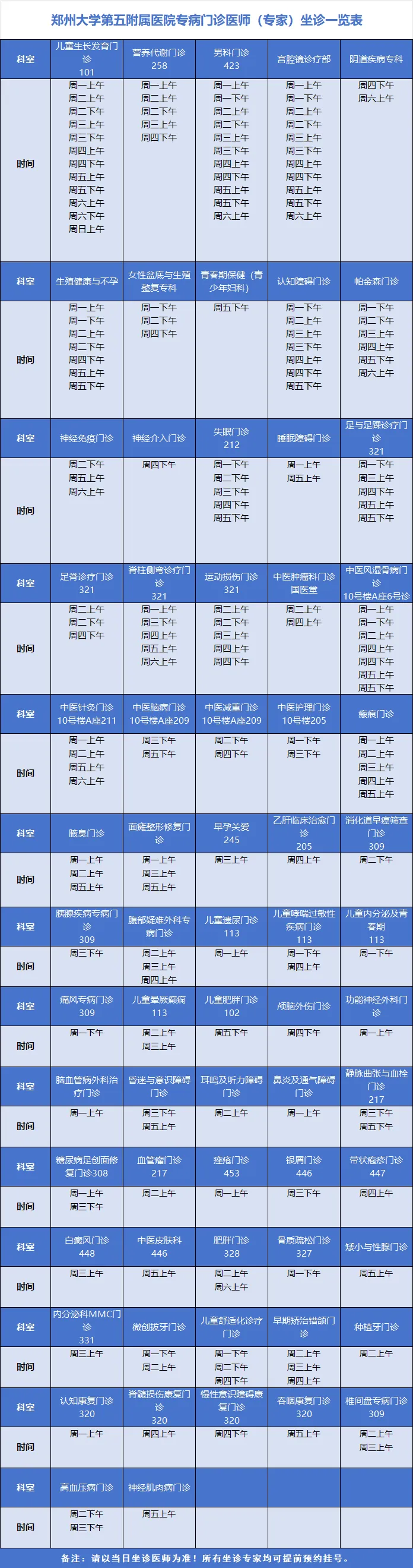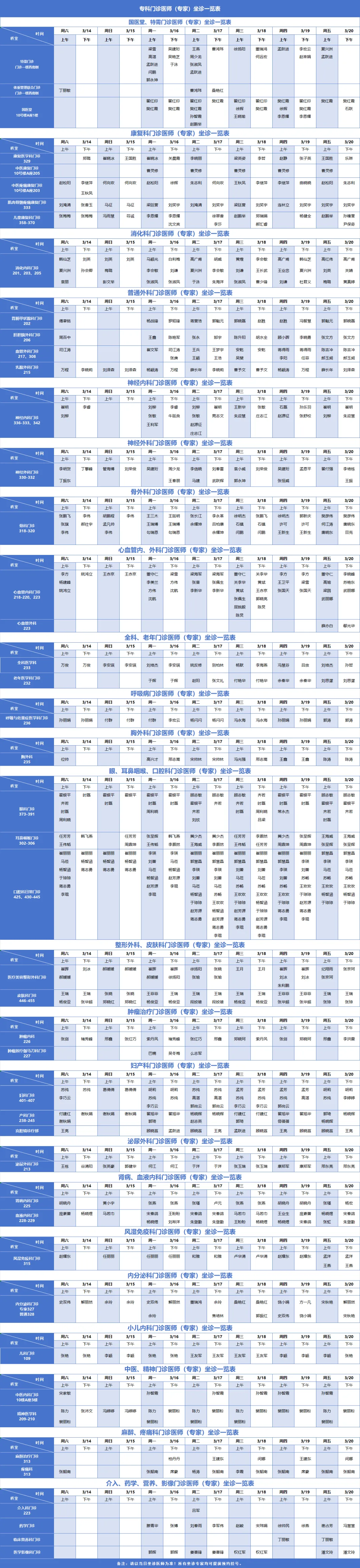 专科门诊医师(专家)坐诊一览表
