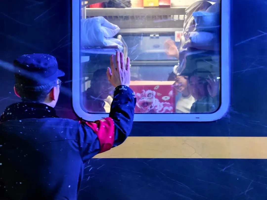 故事:雪落肩头,暖意隔窗,蛇年的最后一趟临客从宝丰站发出,载着铁路公安的祝福与守护,驶向万家团圆的幸福归途。