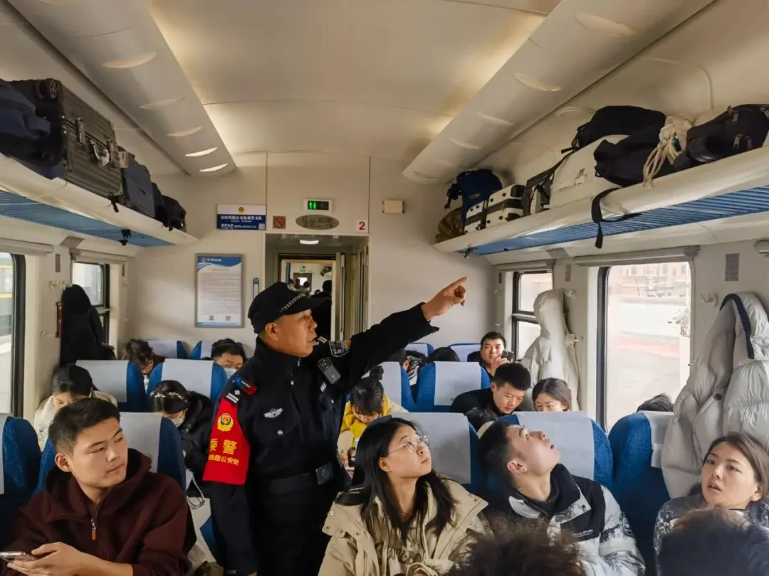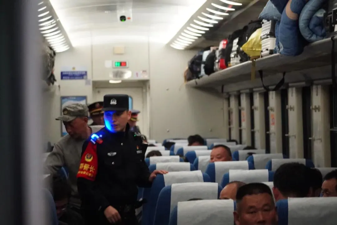 故事:流动的“藏蓝”身影巡行于列车,用脚步丈量平安,用叮嘱传递温暖。
