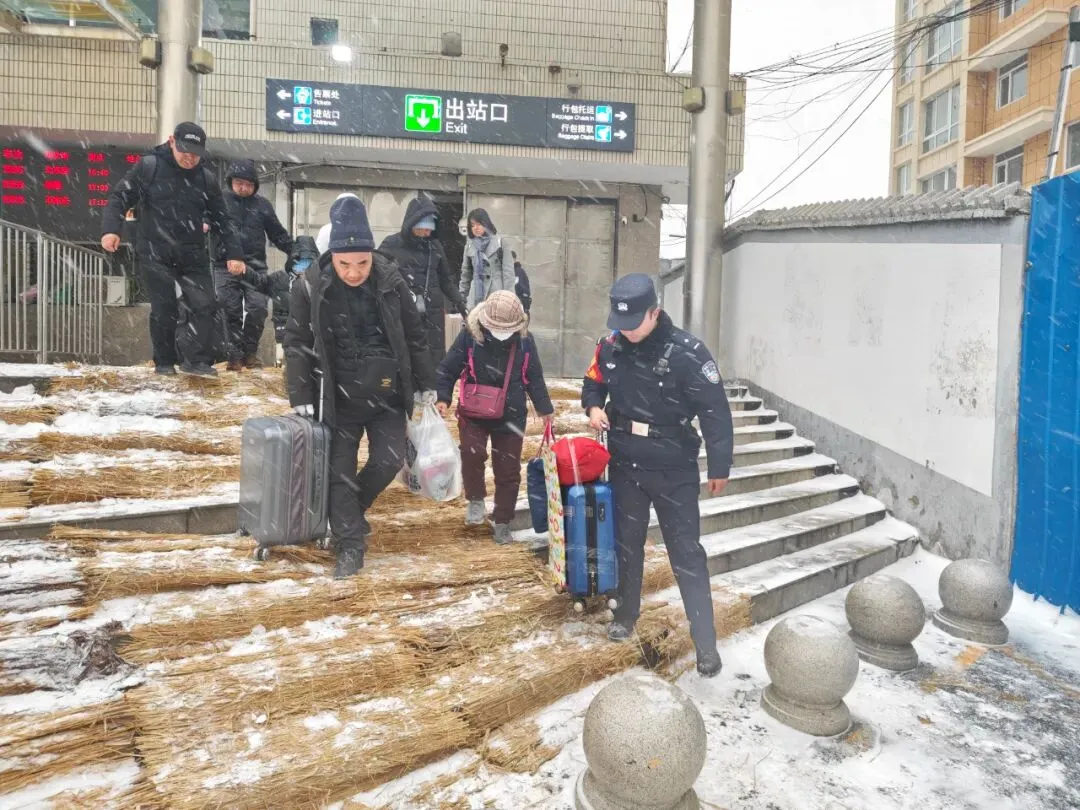 故事:当雪花模糊了视线,当寒风刺痛了脸颊,藏蓝的身影就是风雪中最清晰的路标。出站口外,民警为每一位需要帮助的旅客伸出援手,用自己的热情融化了冰雪,也温暖了一颗颗盼归的心。