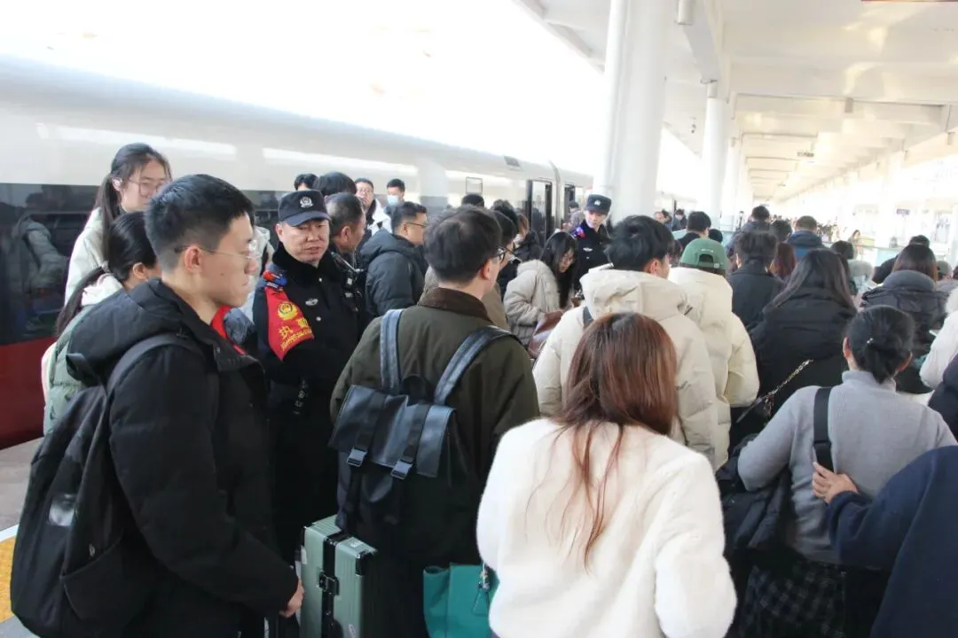 故事:春运期间的焦作站,站台上汇成一片归家的海洋,人流中,两名民警身姿笔挺,他们或是疏导人群,或是指引方向,为每一位急切归乡的游子守护平安与顺畅。