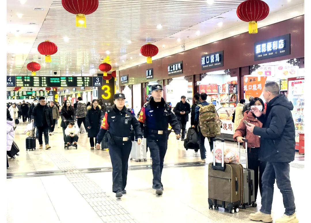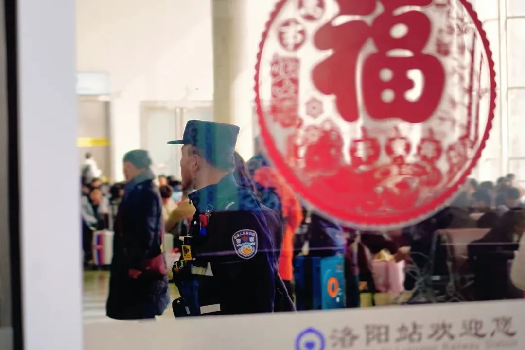 故事:春运大幕拉开,洛阳站暖意融融,一枚红“福”映初心,一身藏蓝担使命。铁路民警坚守岗位,用平安防线,护航旅客的团圆之路。