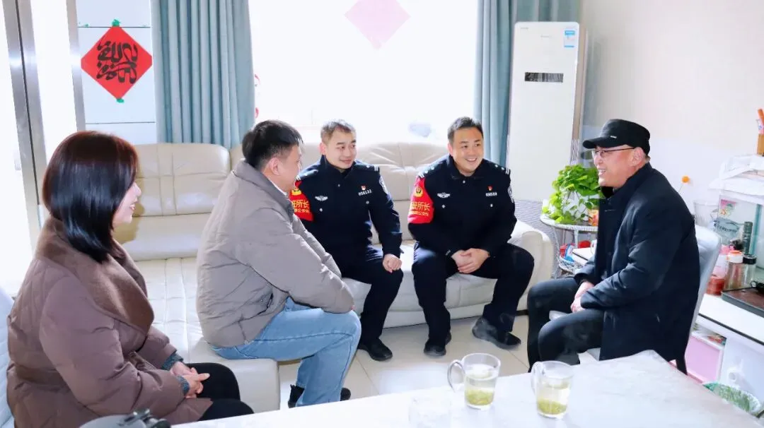 故事:新春佳节来临之际,邓州东站派出所党支部走访慰问青年民警及家属,围坐一堂唠家常,倾听青年民警生活近况和从警感想,送上组织的关怀与新春的祝福,共话青年民警的成长与发展。