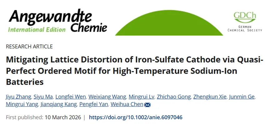 郑州大学化学学院陈卫华Angew.:通过准完美有序基元缓解硫酸铁正极的晶格畸变用于高温钠离子电池