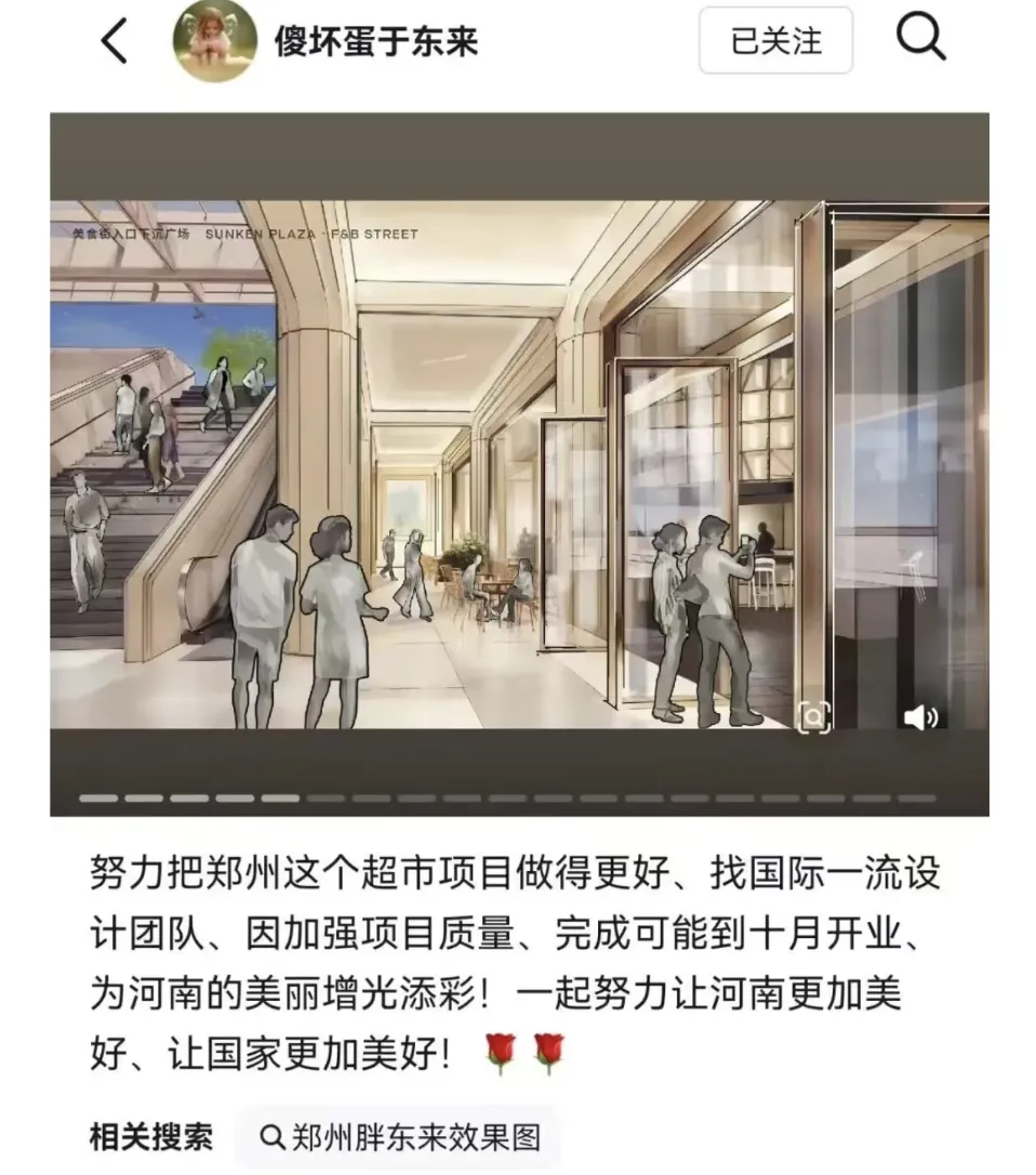 2025年2月份,于东来宣布在郑州开超市,最开始,预计年底就能开业,后面延期到五一,这次再延期三个月,可能要到十月份开业。按照于东来的场面话,这次延期是因为找国际一流设计团队,加强项目质量,这话反而我是不太信!可能老于也有难言之隐。