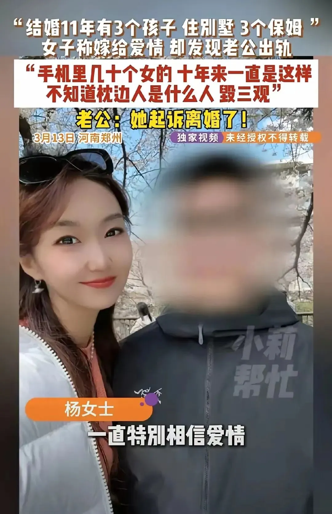 太毁三观!河南郑州,干练、漂亮的杨女士求助电视台,说自己的老公不仅出轨还家暴,现在他又把房子的密码给换了,害的她有家不能回.
