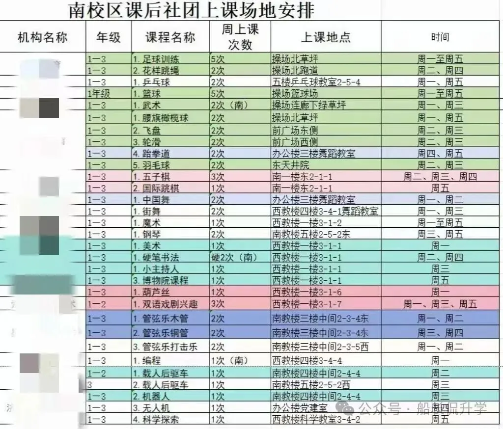 朝凤路小学南校区课后社团安排