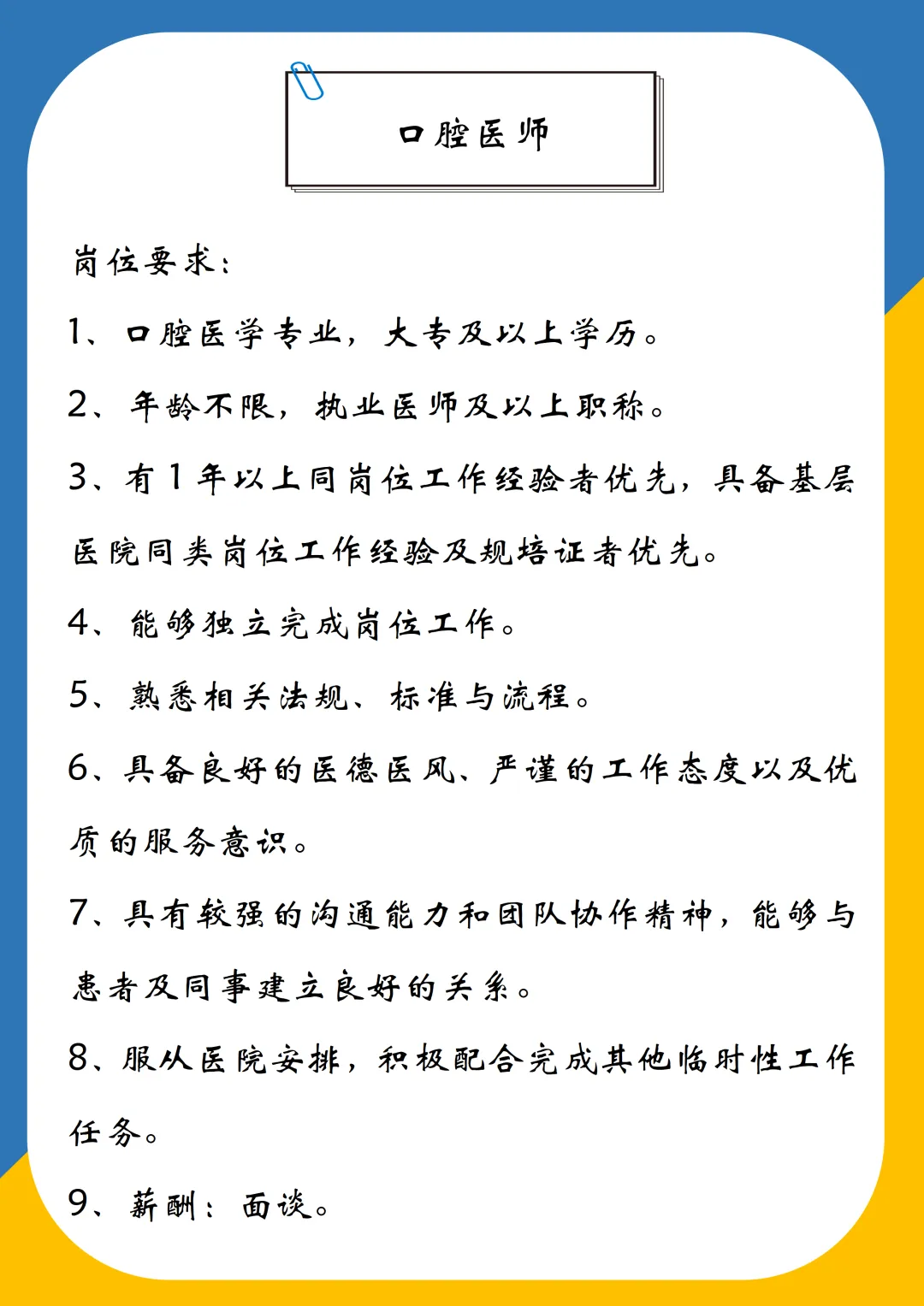 1.口腔执业医师/助理医师/护士,具备扎实的专业基础与执业资质;