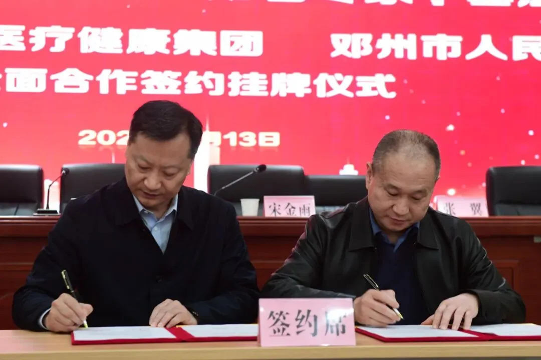 郑州人民医院党委专职副书记、工会主席徐宏伟,邓州市人民医院院长张翼共同签署合作协议。
