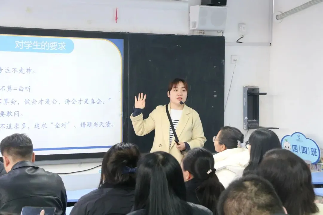 随后,语、数、英、科老师围绕本学期的教学计划与班级管理目标展开说明,明确了各学科的学习重点、能力培养方向以及阶段性任务,提醒家长配合抓好孩子的作息管理、时间规划与学习监督,培养孩子认真审题、及时订正、主动思考的良好习惯。家长会中,班主任老师也着重强调了安全教育、品德养成与心理健康的重要性,希望家长多关注孩子的情绪变化,多给予鼓励与陪伴,加强家校沟通,形成教育合力。