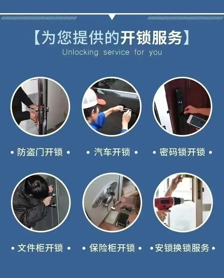 🔓 快速开锁:24小时内随时到场,提供家庭、汽车、商铺等各类开锁服务,确保问题及时解决。🔒 换锁与修锁:锁具损坏或老化?我们提供专业的换锁与修锁服务,恢复门窗锁具的最佳状态。🚗 汽车开锁:如果您的汽车钥匙丢失或被锁在车内,我们的开锁师傅会迅速解锁,避免您陷入困境。🏢 商业开锁:商铺门锁故障或被锁住?我们为商户提供快速高效的开锁服务,尽快恢复营业。📞 全天候服务:无论白天还是夜晚,拨打 400-8088-269,我们的开锁团队会在最短时间内到达,为您解决锁具问题。