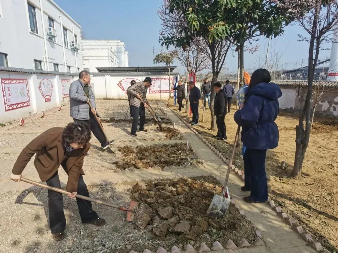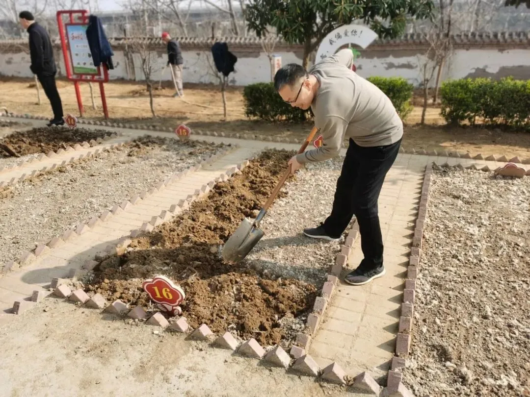 活动现场热火朝天,大家分工协作、干劲十足,挥锹铲土、扶苗浇灌、翻土整地一气呵成,用劳动为春日绘就生机画卷。