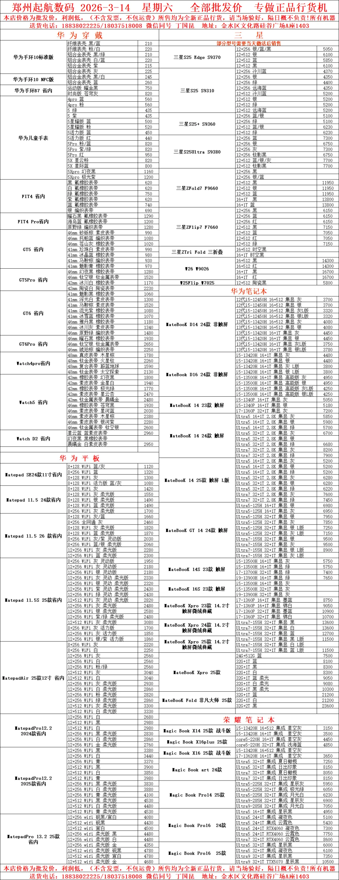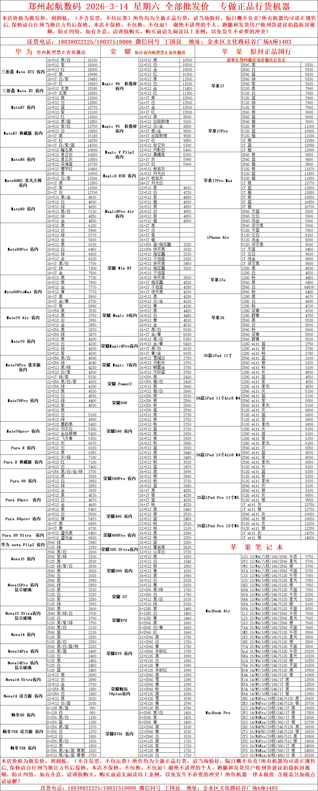 每天手机最新行情 请关注微信每日推送微信公众号:郑州起航数码公司地址:郑州市金水区文化路82号硅谷广场A座1403