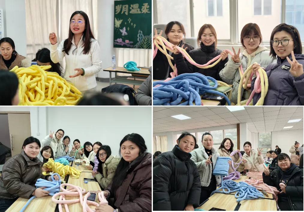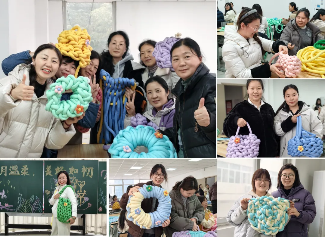 本周,在三八国际妇女节来临之际,我校组织全体女教职工开展温馨手作活动。大家围坐一起,用冰岛毛线创意编织,在轻松愉悦的氛围里交流互动、感受手工乐趣。活动现场暖意融融,江亚茹校长向全体女教职工致以节日祝福,肯定大家在教育岗位上的辛勤付出与担当奉献,祝愿各位女教师节日快乐、工作顺利、生活美满。此次活动舒缓了身心、凝聚了力量,充分展现了我校女教职工积极向上的精神风貌。