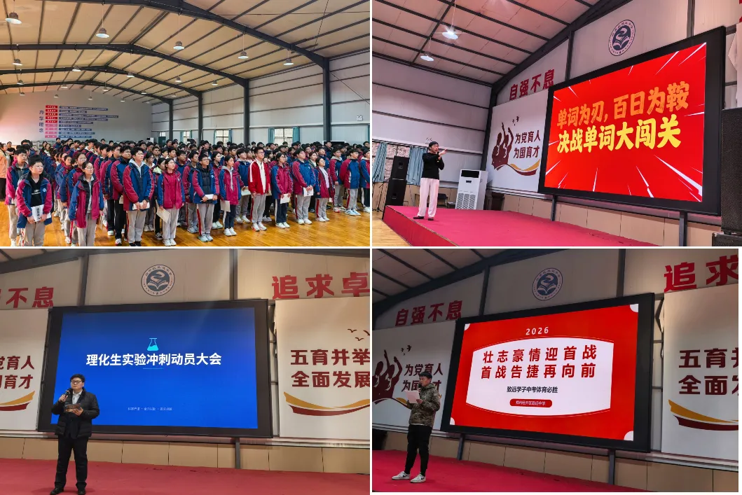3月11日,我校九年级举行中考百日誓师大会。全体师生士气高昂,誓言铿锵,展现出奋力拼搏、迎战中考的坚定决心。家长们到场为学子鼓劲助威,寄予殷切希望。此次大会鼓舞了士气、凝聚了力量。全体初三学子将以百倍信心冲刺百日,全力以赴,不负青春,勇创佳绩。