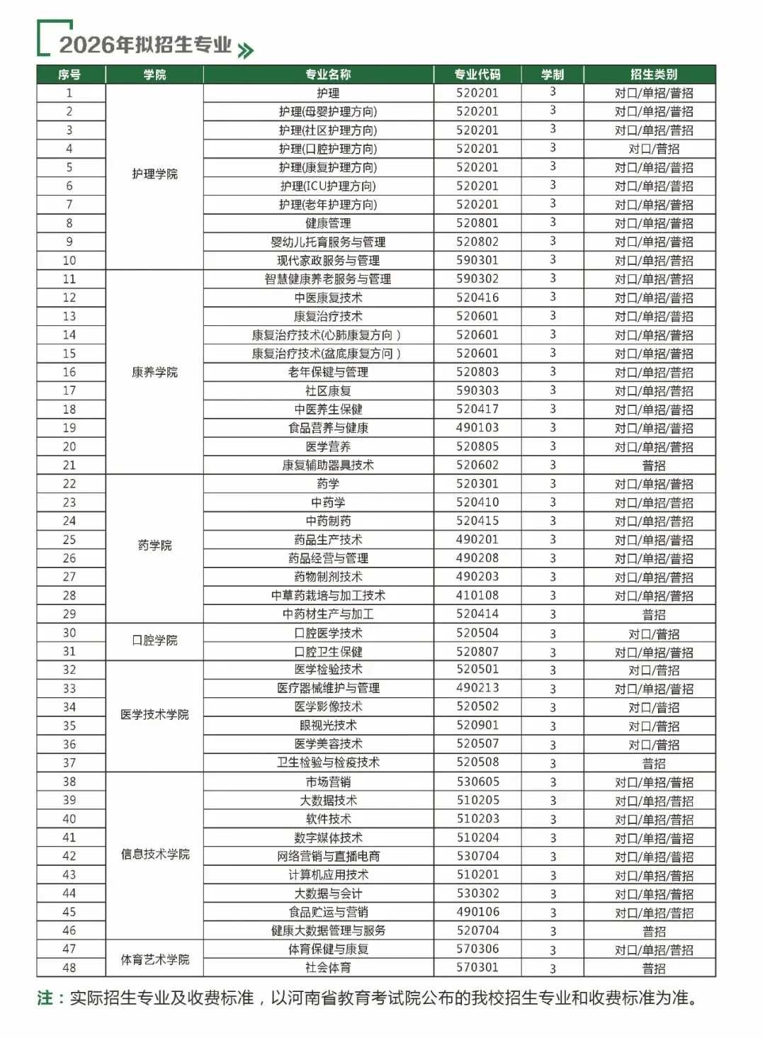 (二)健康管理、婴幼儿托育服务与管理、中医养生保健、药物制剂技术、医学检验技术、医疗器械维护与管理、口腔医学技术、口腔卫生保健、计算机应用技术、大数据与会计,以上10个专业学费 14000元/生·年。