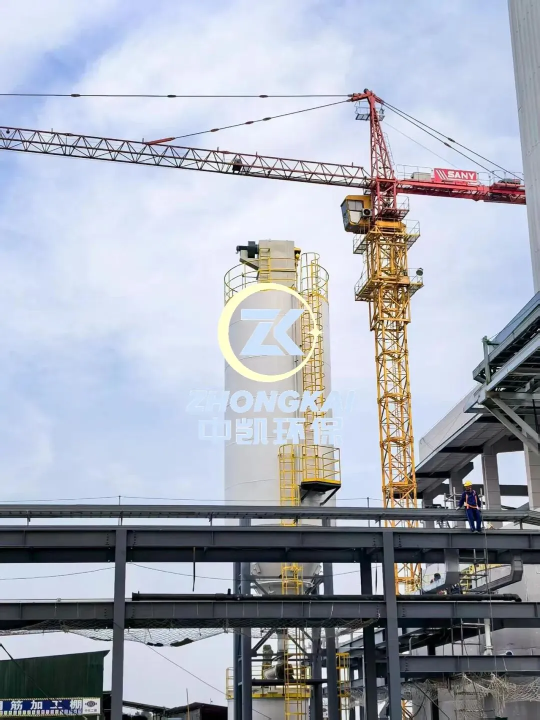 郑州中凯环保成立于2018年,注册资本2188万元,是一家专注于环境保护专用设备制造、销售及安装服务的专业企业,拥有15项专利技术、8项资质证书,参与各类招投标项目20次,在料仓设备研发、生产、安装领域积累了丰富经验,可提供全流程一体化解决方案。此次与2024中国制造业企业500强的成功合作,既是对郑州中凯环保技术实力与施工水平的充分肯定,也是公司拓展化工领域合作、践行绿色发展理念的重要实践。此次100m³石灰料仓的顺利安装,相关配套设备的短板,完善了其“原料储存-生产加工”的闭环链路,更彰显了郑州中凯环保助力化工企业绿色升级、高效发展的专业能力。