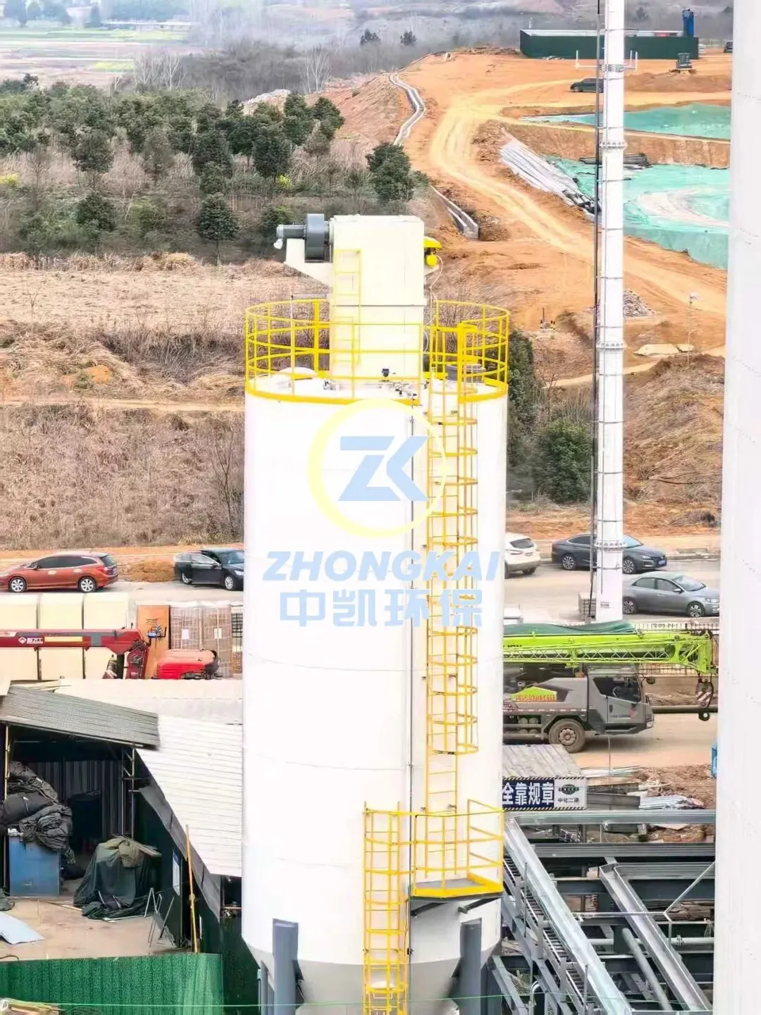 据悉,该100m³石灰料仓采用郑州中凯环保自主研发的过滤型石灰料仓相关技术精髓,结合密闭式设计,兼具储存、投加、环保三大核心功能,相较于传统储存方式优势凸显,更融入了公司多项专利技术加持的便捷设计——一是实现石灰粉末/颗粒的密封存放,有效避免受潮结块、扬尘污染,保障原料纯度,从源头守护生产环境,契合环保合规要求,呼应公司“深耕环保领域、守护碧水蓝天”的发展方向;二是搭配公司配套的螺旋输送机等设备,实现石灰定量、均匀投加,精准控制药剂用量,减少原料浪费,降低生产成本,彰显高效节能优势;三是可与PLC控制系统联动,实现料位自动监测、投加量自动调节、故障自动报警,提升项目智能化运维水平,减少人工干预,降低运维风险,充分体现郑州中凯环保“技术驱动、创新引领”的发展理念。