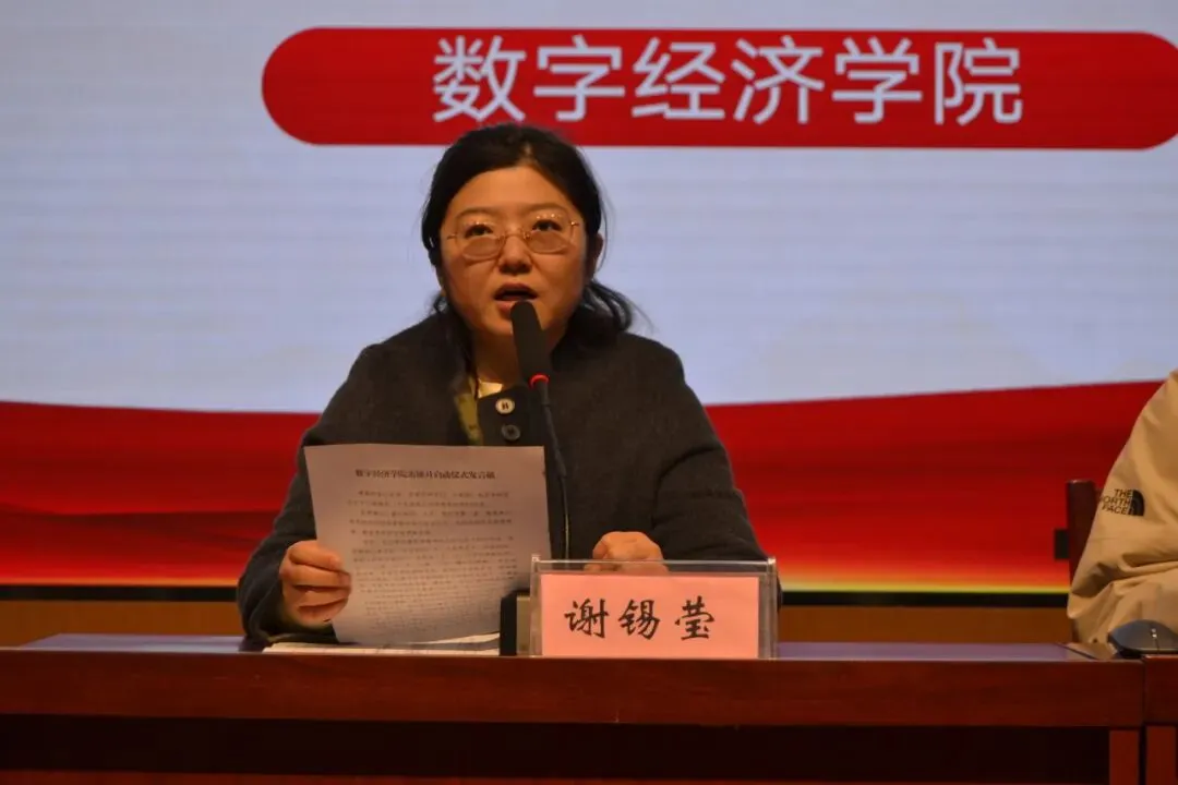 仪式开始,谢锡莹对本次雷锋月活动进行安排部署,明确活动主题、内容与要求,号召全体学生干部积极参与主题宣讲、志愿服务、文明实践等系列活动,以实际行动讲好雷锋故事、传递青春正能量,展现数字经济学院学子的责任与担当。
