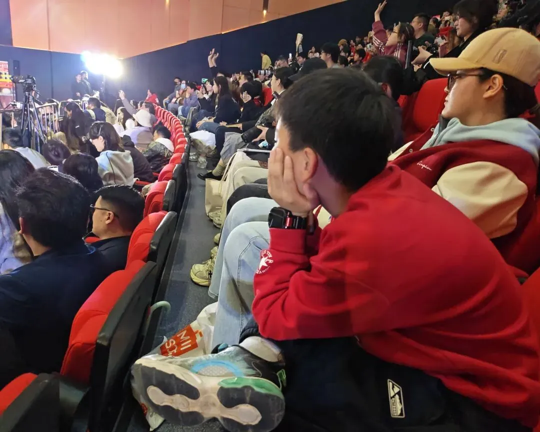 电影结束,灯光亮起,吴京和主创团队出现在台上。