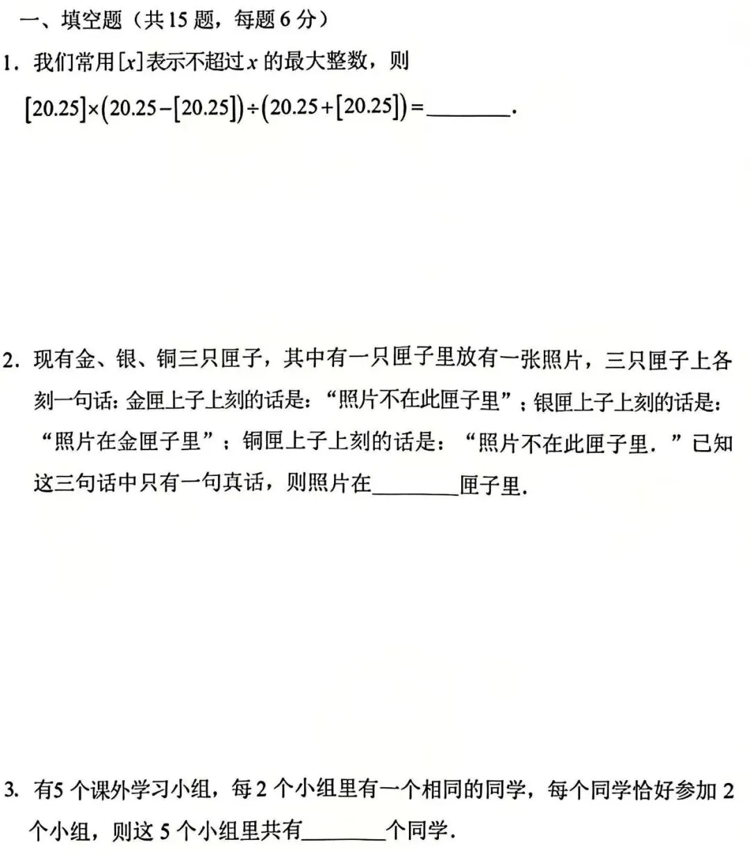 郑州某外国语学校丘班(郑州某外国语早培)选拔考试试卷,又是一套丘成桐班数学选拔考试,这个适合优秀的小学5、6年级的孩子做课外练习,或者初中低年级的孩子使用。