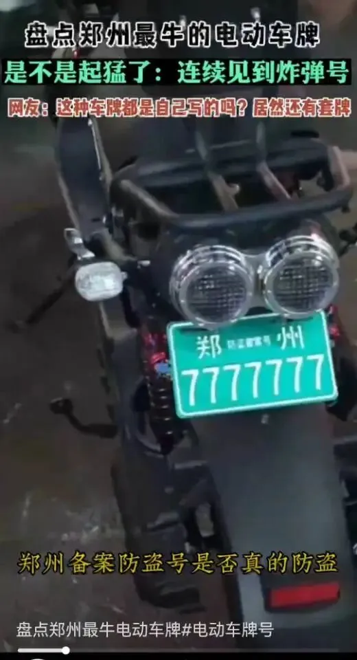 最近在路上常看到电动车车牌炸弹号,不禁想起了几年前郑州电动车上牌的新闻: