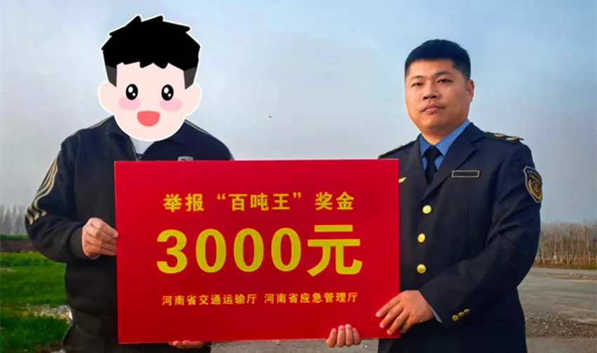 近日,省应急管理厅、省交通运输厅向5名举报人每人兑现“百吨王”货车违法超载举报奖金3000元。这是全省首批兑现的“百吨王”货车违法超载举报奖励案例。