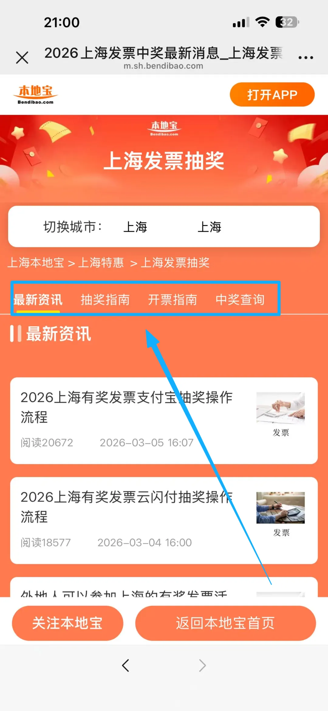 从上述入口进入全国发票抽奖工具后,下划找到对应城市。以上海为例,在上方就可以看到上海抽奖入口、发票开具指南、中奖查询方法...一站式攻略