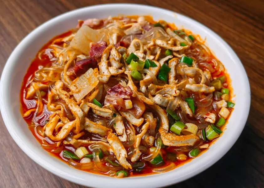 晚上得尝“禹州豆腐菜”。炖得慢,汤色透亮。豆腐切成细片,与粉条、木耳、猪骨头一锅炖足两小时。咕嘟的香气,能把整条巷子都熏暖。