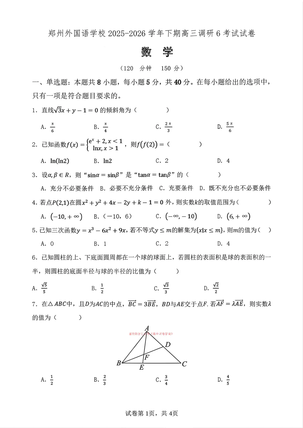 郑州外国语学校2025-2026学年高三调研6考试试卷及答案电子版拉到文末自取(已附下载链接)
